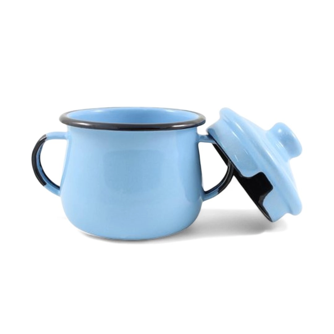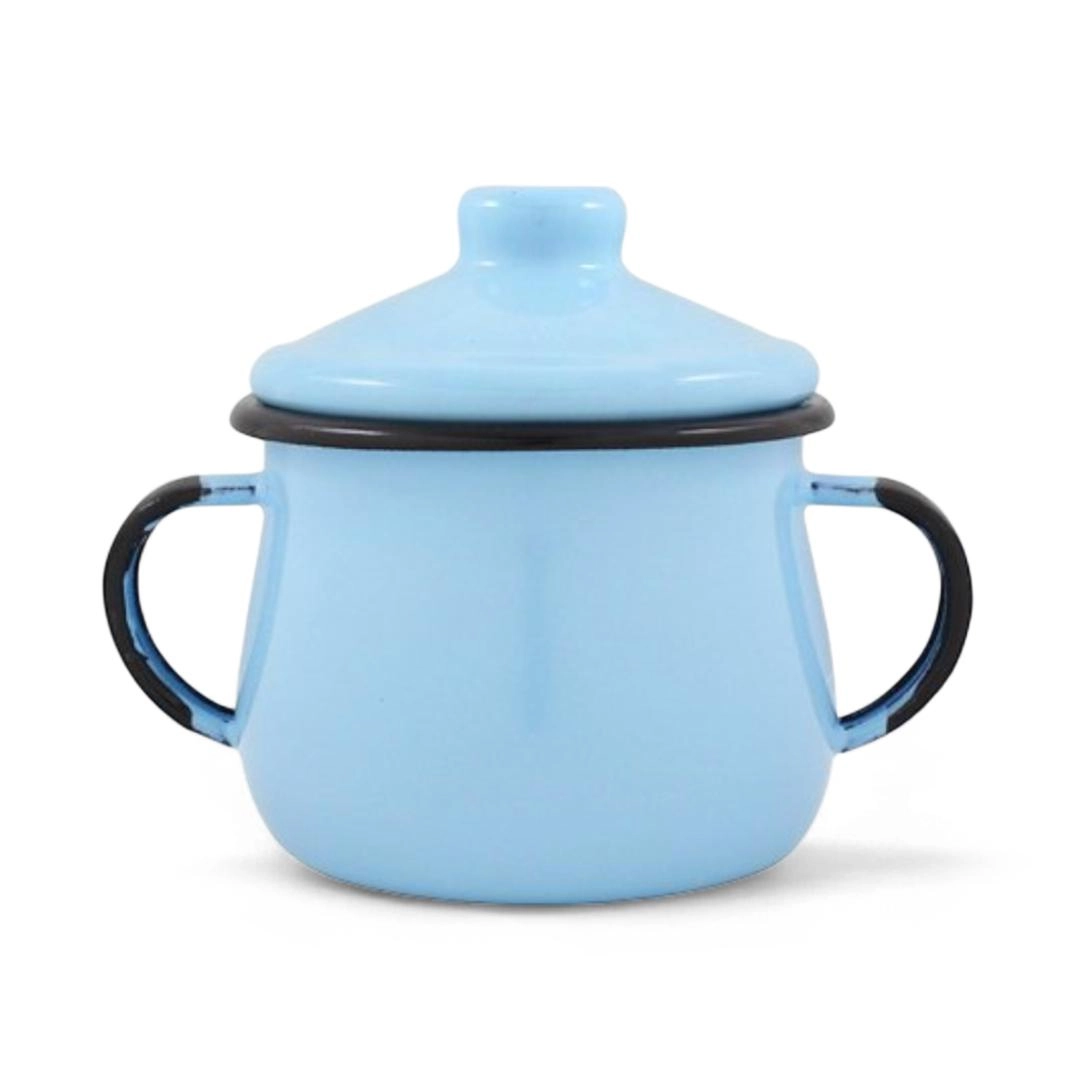 Possui um lindo esmaltado na cor azul claro e alças e pegador da tampa em aço esmaltado.