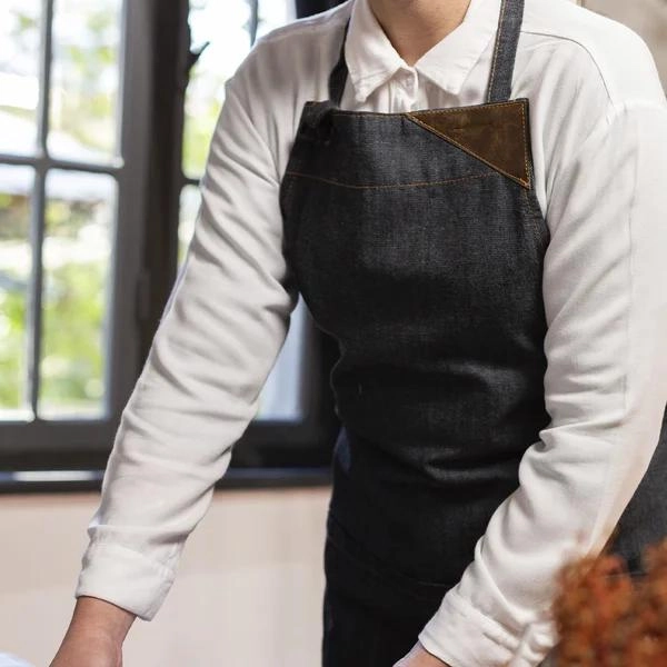 Bolsos: A presença de bolsos nos aventais é extremamente útil para manter utensílios essenciais ao alcance das mãos. Ideal para armazenar termômetros, colheres de medida ou até mesmo o smartphone com as receitas.