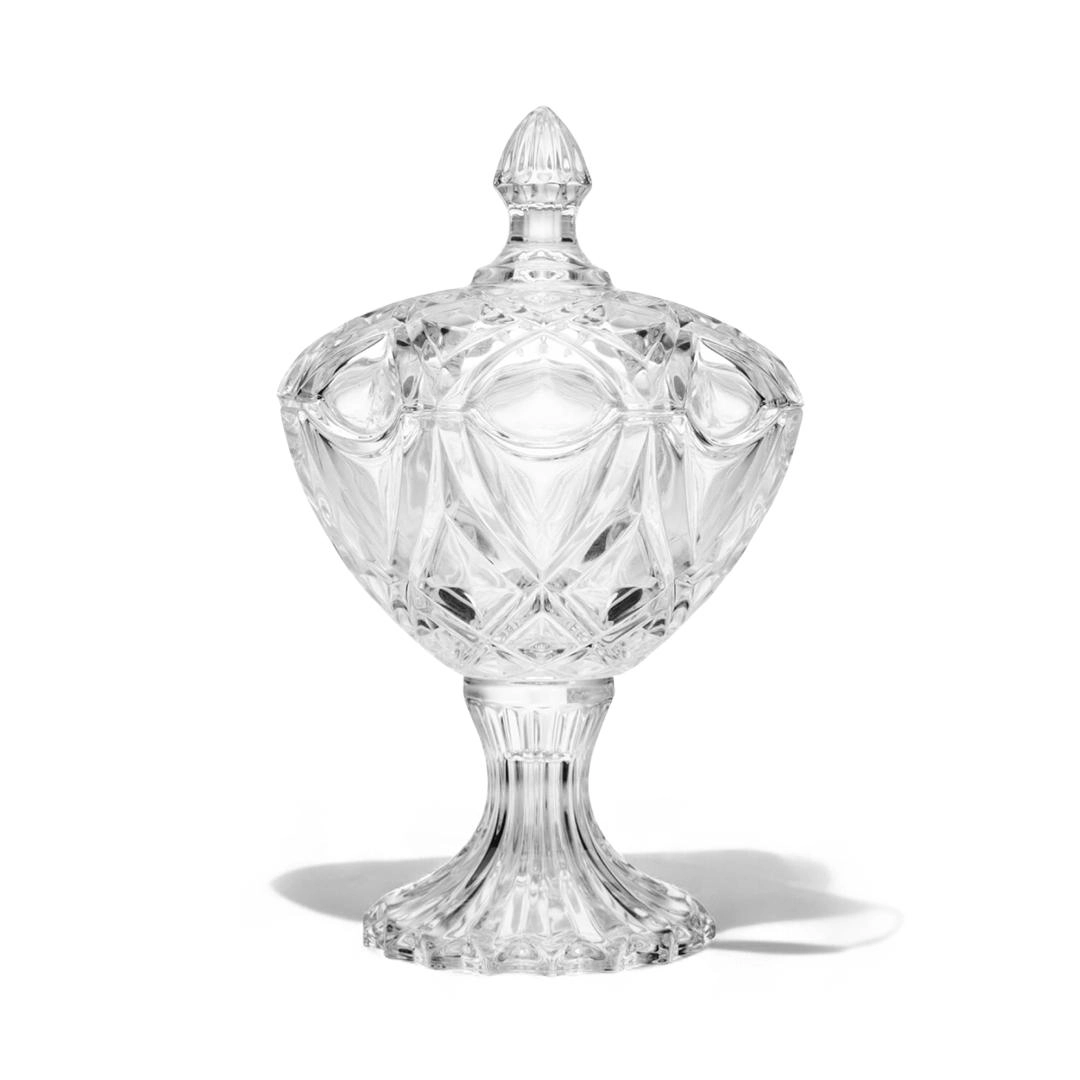 O Potiche de Vidro com Pé e Tampa Star da Lyor é uma peça sofisticada que combina elegância e funcionalidade. Com seu design refinado, incluindo um pé delicado e uma tampa adornada com uma estrela, este potiche é perfeito para adicionar um toque de requinte à sua decoração.