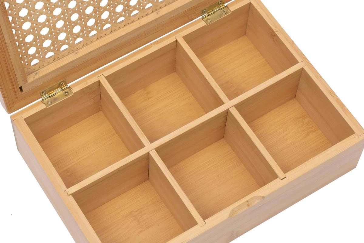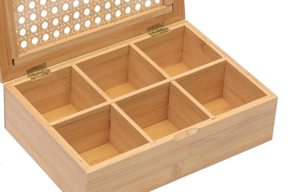 A Caixa para Chá e Especiarias de Bambu com palinha da Mimo Style é perfeita para organizar sachês de chá e especiarias de maneira higiênica e cheia de estilo. Possui 6 divisões para organizar vários sabores de chá e sempre ter muitas opções para surpreender a todos.