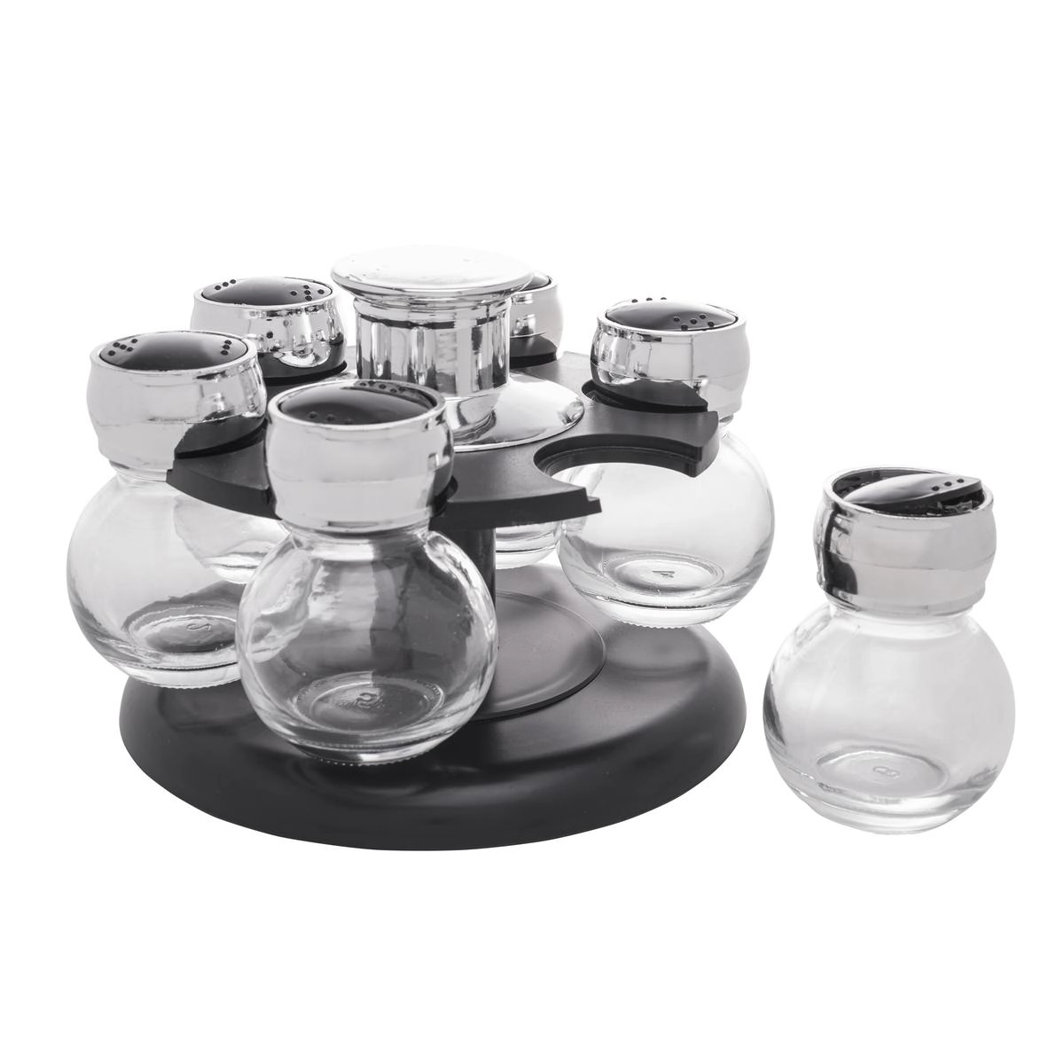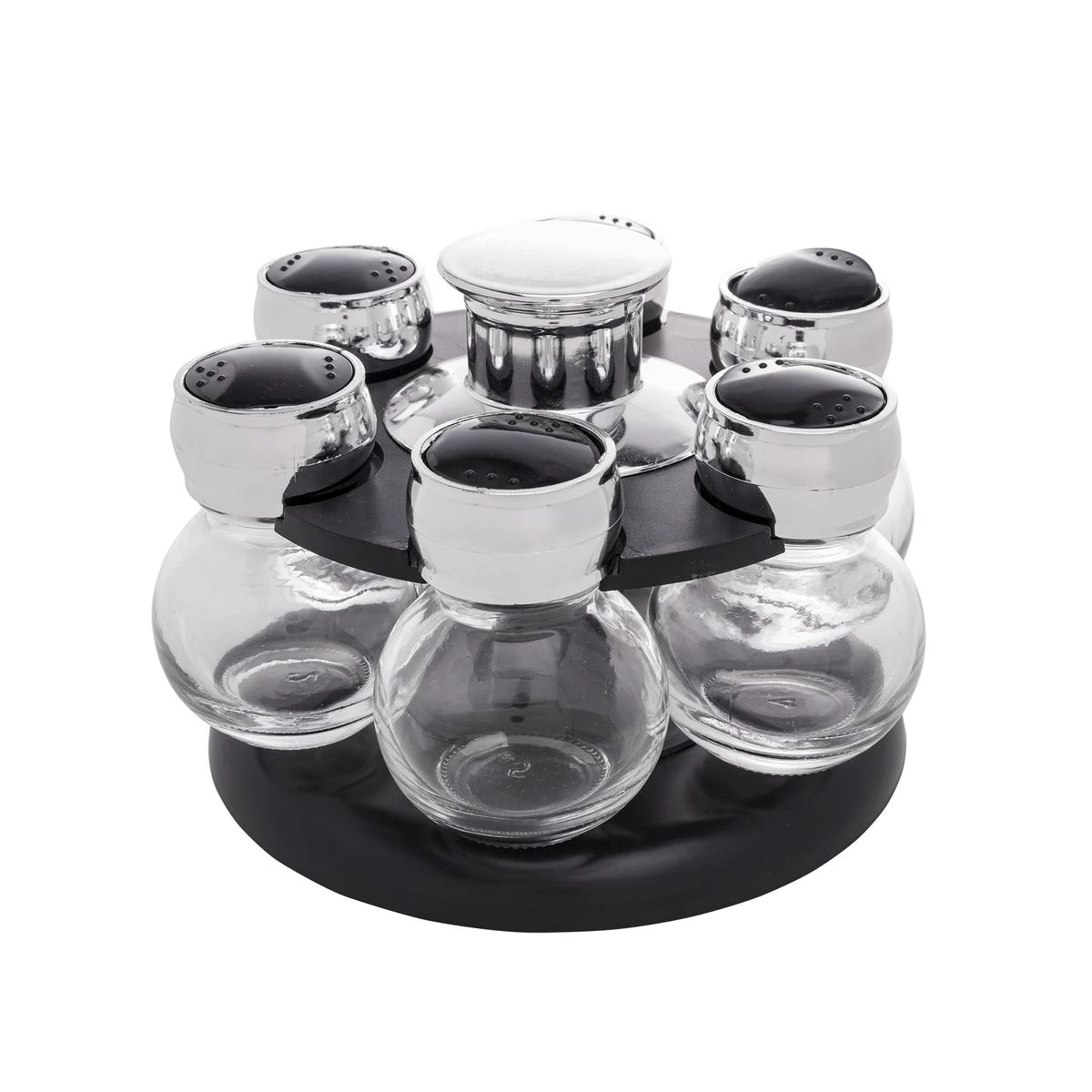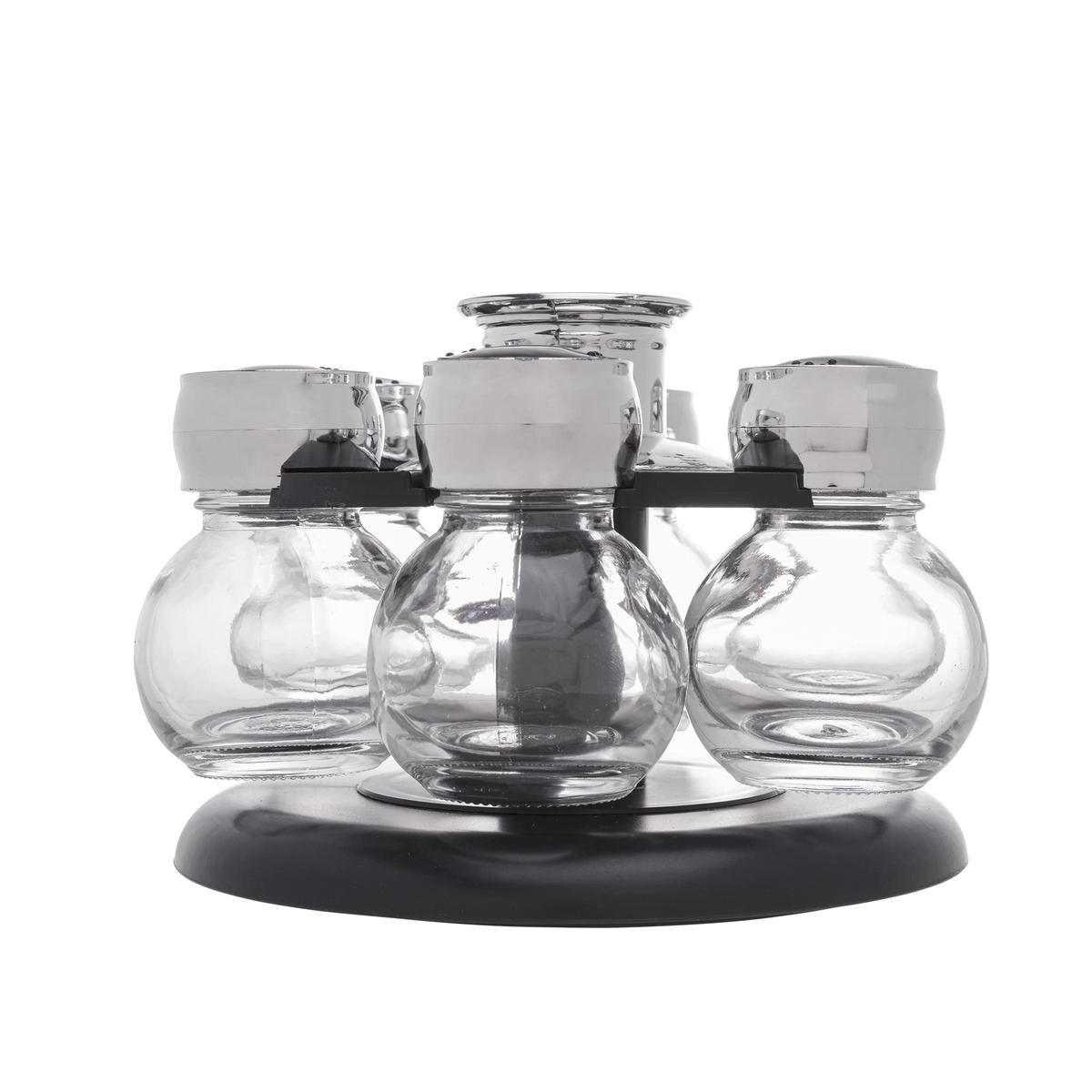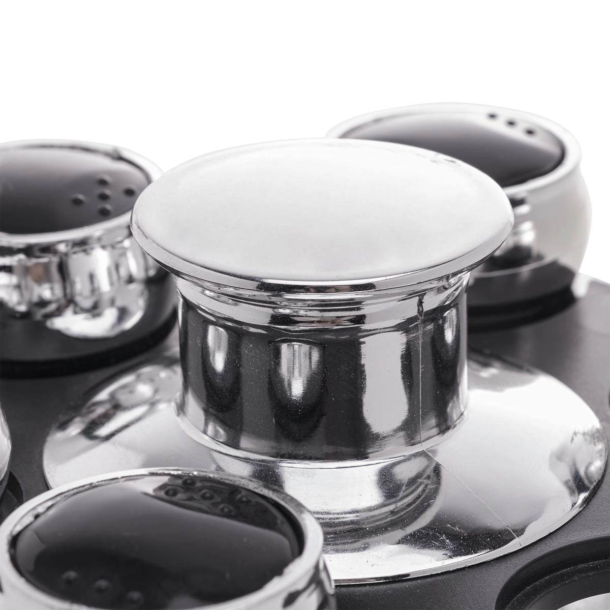 O Conjunto de 6 Potes para Condimentos com Base Giratória é extremamente funcional, comporta uma variedade de temperos e condimentos.