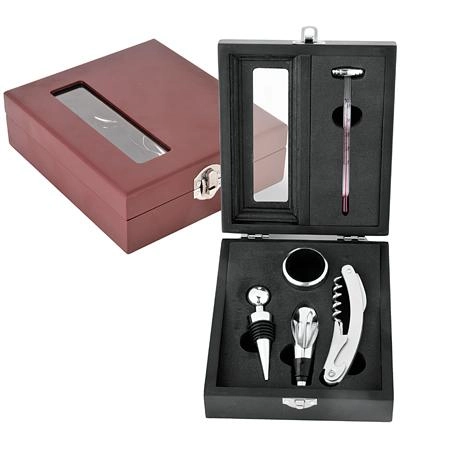 O Conjunto de Acessórios para Vinho 5 peças com Estojo de Madeira Mimo Style é um kit completo com acessórios que vão facilitar na hora de servir um bom vinho. Um kit perfeito para quem aprecia um bom vinho.