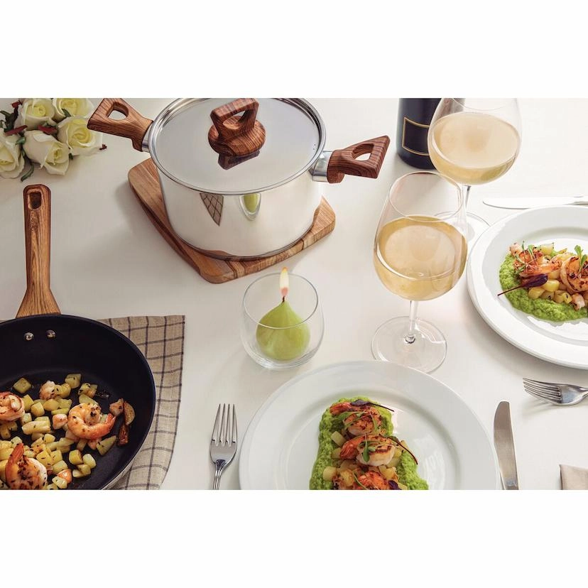 Mude a sua forma de cozinhar com o Jogo de Panelas Tramontina Brava Antiaderente em Aço Inox com Fundo Triplo Cabos e Alças com Acabamento Efeito Amadeirado 4 Peças.