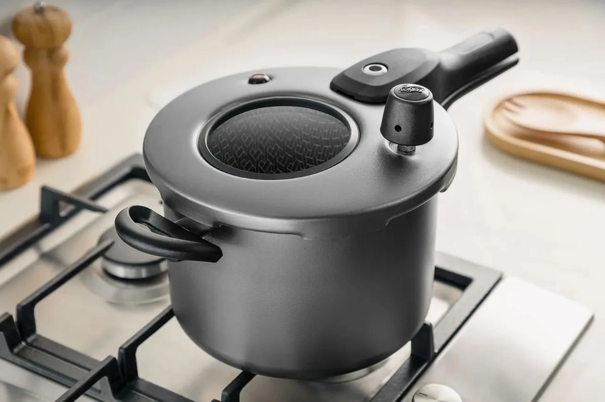 Com acabamento na charmosa cor grafite, a panela une modernidade e resistência. O sistema de fechamento externo proporciona maior segurança e facilidade no manuseio, complementado por dispositivos que garantem confiança total no preparo das refeições.