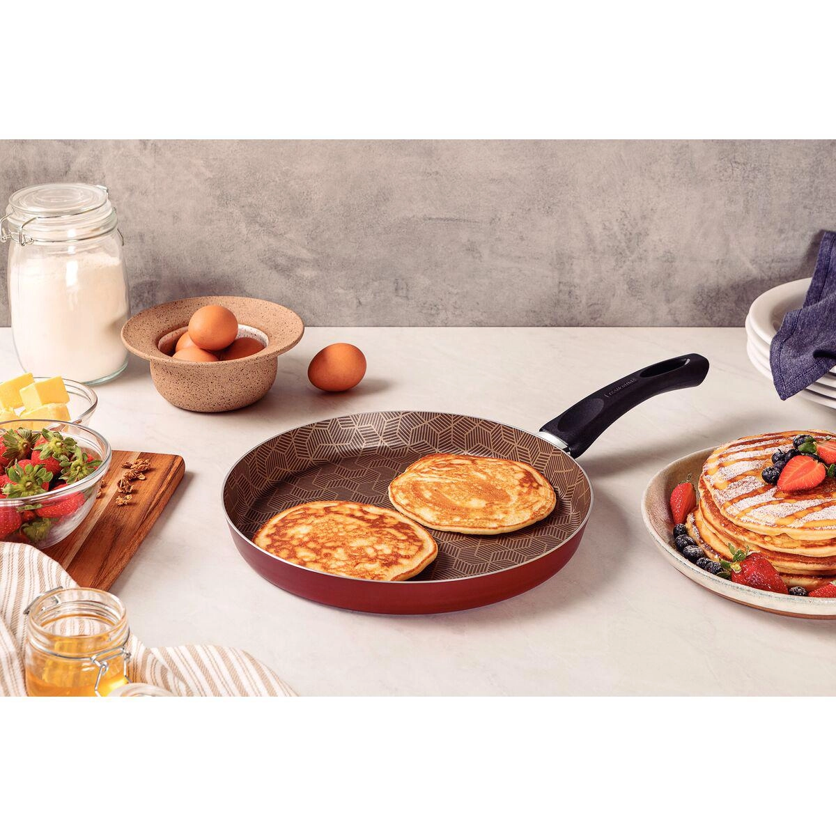 A panquequeira Tramontina Paris em alumínio com revestimento interno e externo antiaderente Starflon Max vermelho 28 centímetros 1,8 litros vai lhe auxiliar a preparar suas tapiocas e panquecas para seu café da manhã ou lanche com funcionalidade e versatilidade.