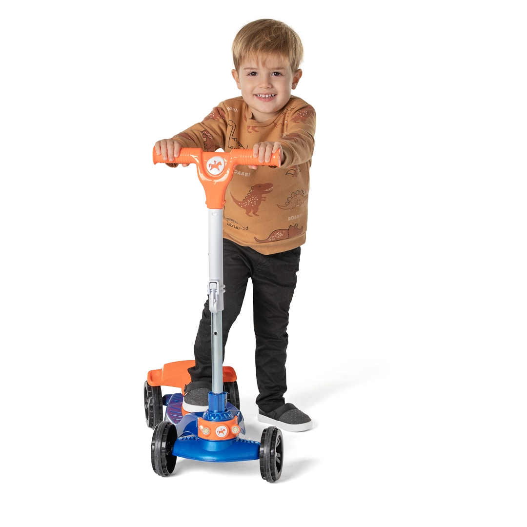 Este patinete não é apenas para deslizar pela rua – com um simples toque, ele se transforma em um banquinho super prático, perfeito para auxiliar os pequenos no equilíbrio na fase dos +12 meses, também para uma pausa rápida para descansar enquanto aproveita o dia com a família.