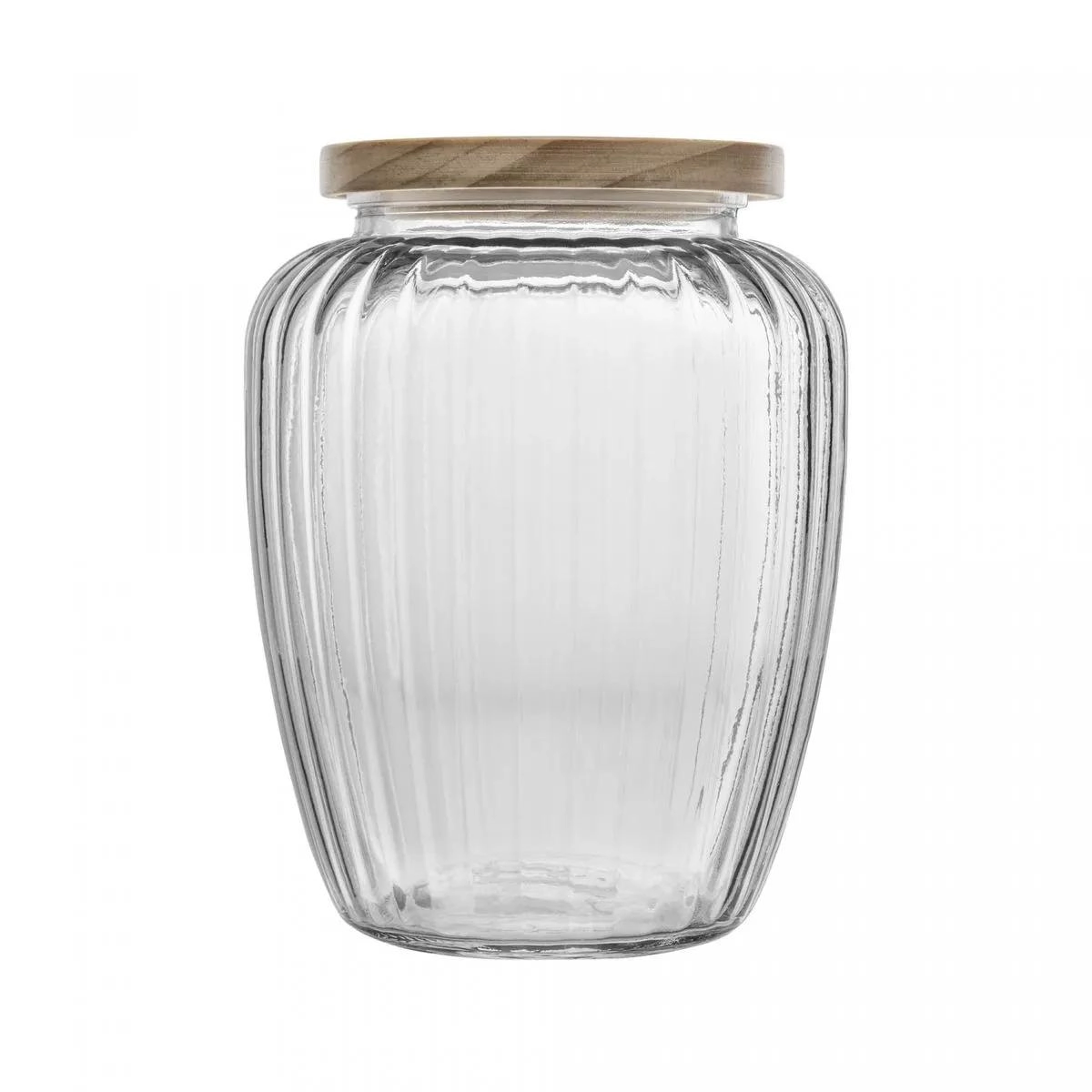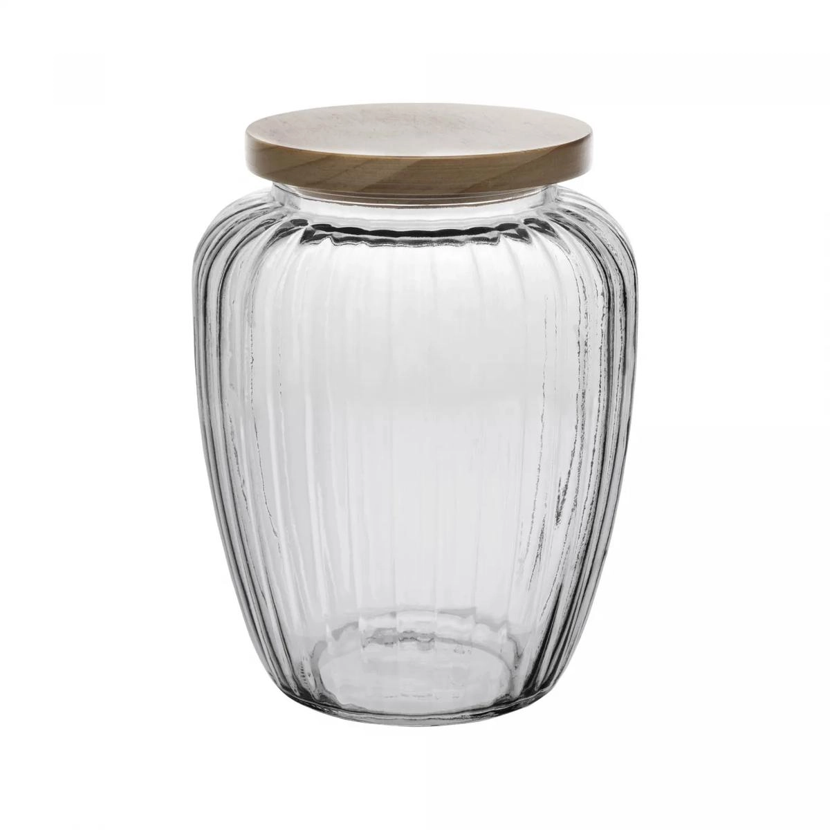 Mantenha seus alimentos organizados e frescos com o Porta Mantimento de Vidro com Tampa de Pinus da Wolff.