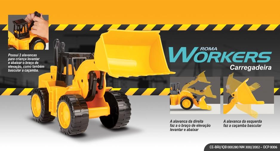 O Roma Workers Carregadeira é articulada pois possui 2 alavancas para levantar e abaixar o braço de elevação, como também bascular a caçamba.