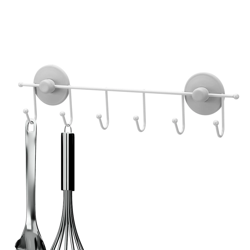 O Suporte com 6 Ganchos Dupla Face Cinza Arthi é um suporte multiuso, podendo ser utilizado na lavanderia para organizar itens como rodos e vassouras ou até mesmo na cozinha, para guardar utensílios e tê-los sempre à mão.