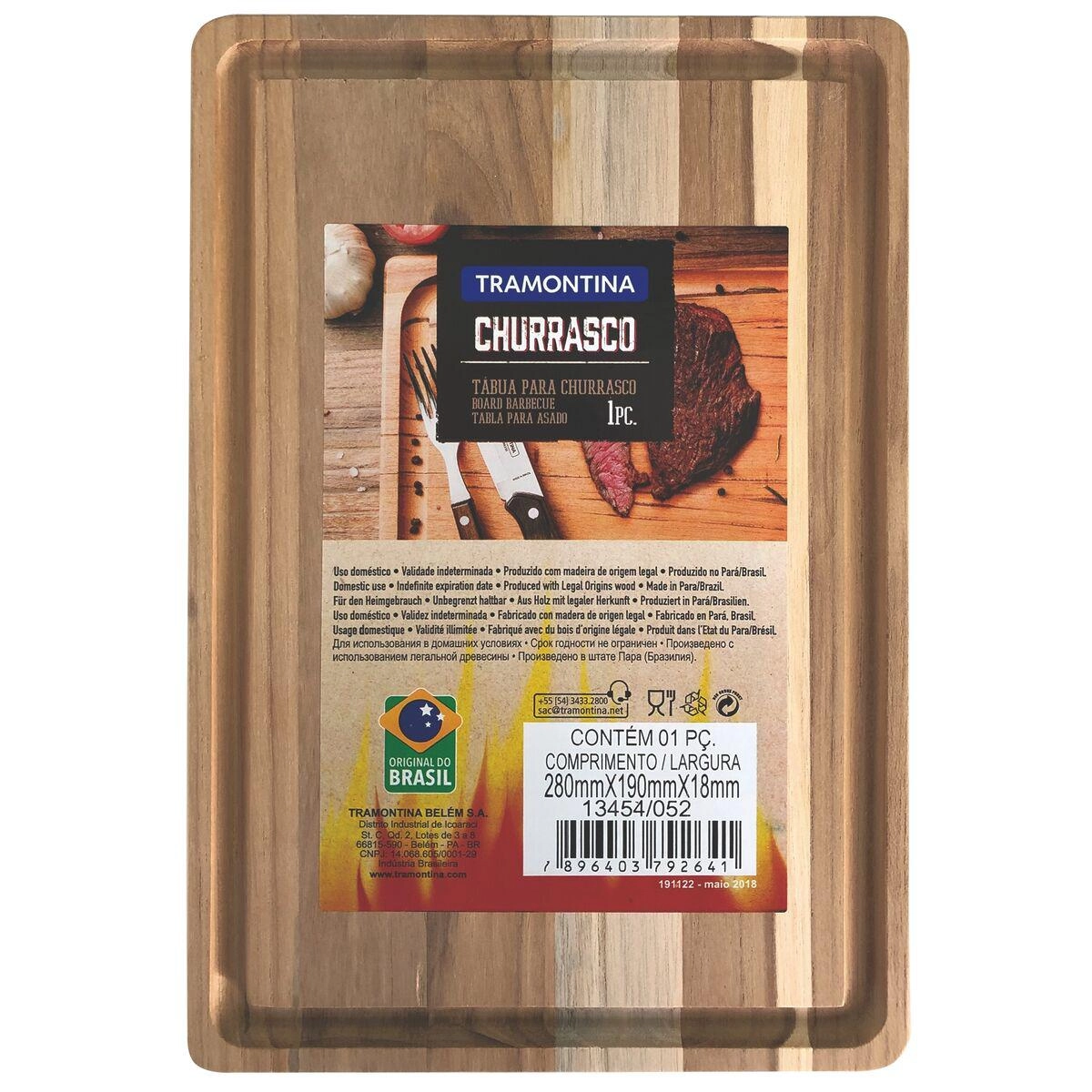 TABUA CORTE RETANGULAR 13454/052 28X19X1,8CM MADEIRA TRAMONTINA
