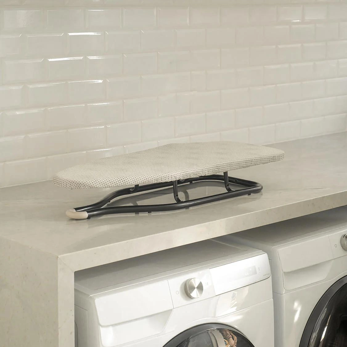 A tábua de passar roupas compacta Ou da Linha Flow é versátil e prática, podendo ser apoiada sobre qualquer superfície firme, tornando seu dia a dia mais fácil. Compacta e funcional, pode ser utilizada em qualquer ambiente. Seu tampo amplo garante mais comodidade, enquanto o gancho de suspensão dobrável facilita o armazenamento.