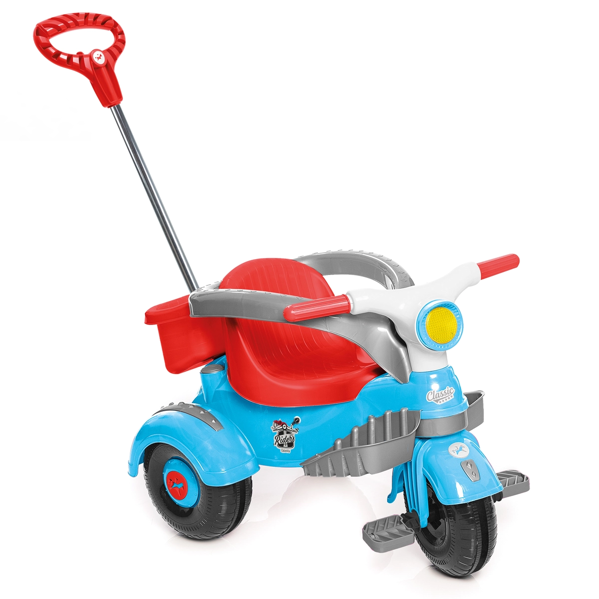 Em modelo Classic é o triciclo pensado em criar memorias, ideal para um delicioso passeio na companhia dos pais. Colorido, confortável e seguro, é a opção certa para as aventuras ao ar livre.