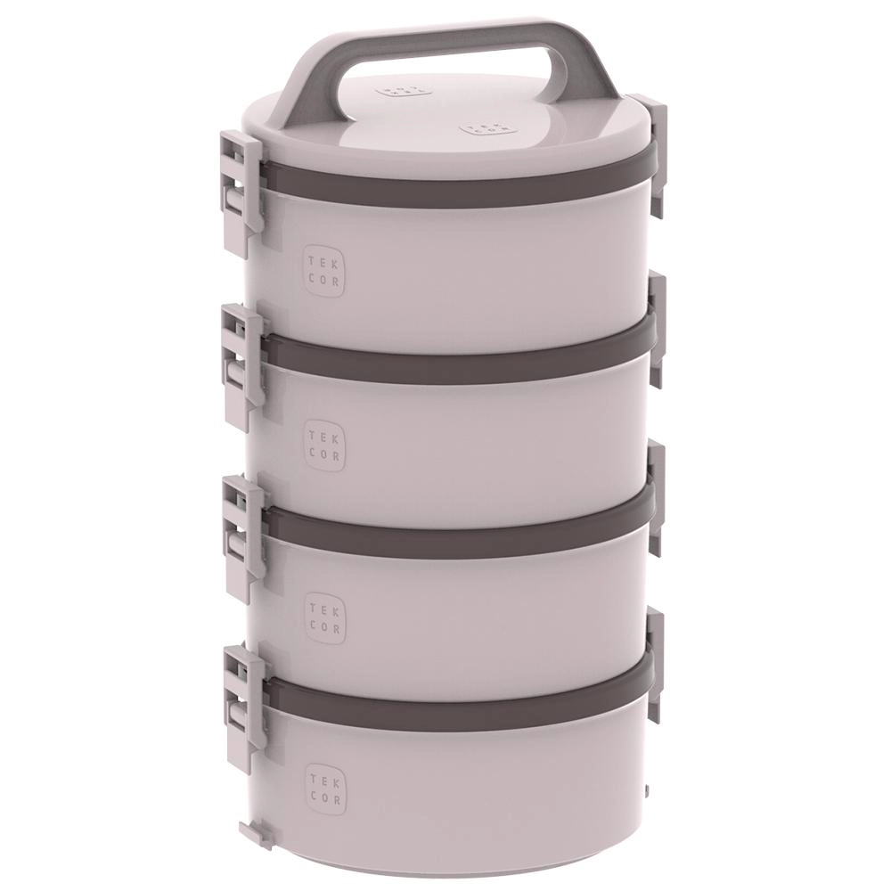 Conserva os alimentos em temperatura ideal para consumo. Possui presilhas para fechamento e alça robusta para transporte. Pode ser utilizado no microondas (sem a tampa). Conta com quatro pratos- dois sem divisão interna, um com divisão interna dupla e um com divisão interna tripla.